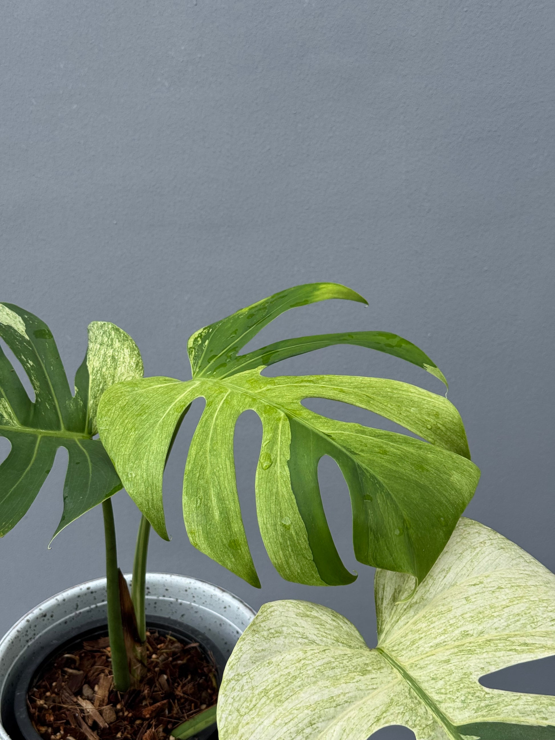 The Monstera Jungle Mint is a rare and prized variety, known for its elegantly split mint green leaves and slender growth habit.