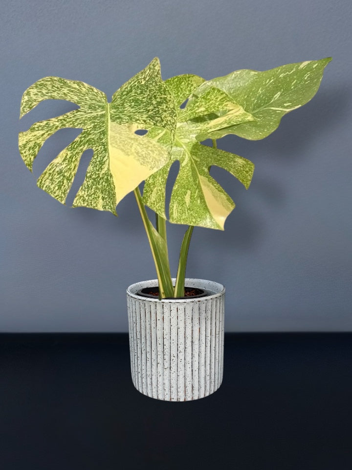 The Monstera Starlight Variegated is a rare and visually striking variety, prized for its star-like creamy variegation delicately scattered across deep green leaves. The fine speckled pattern creates a luminous effect, giving each leaf a unique and almost celestial appearance.