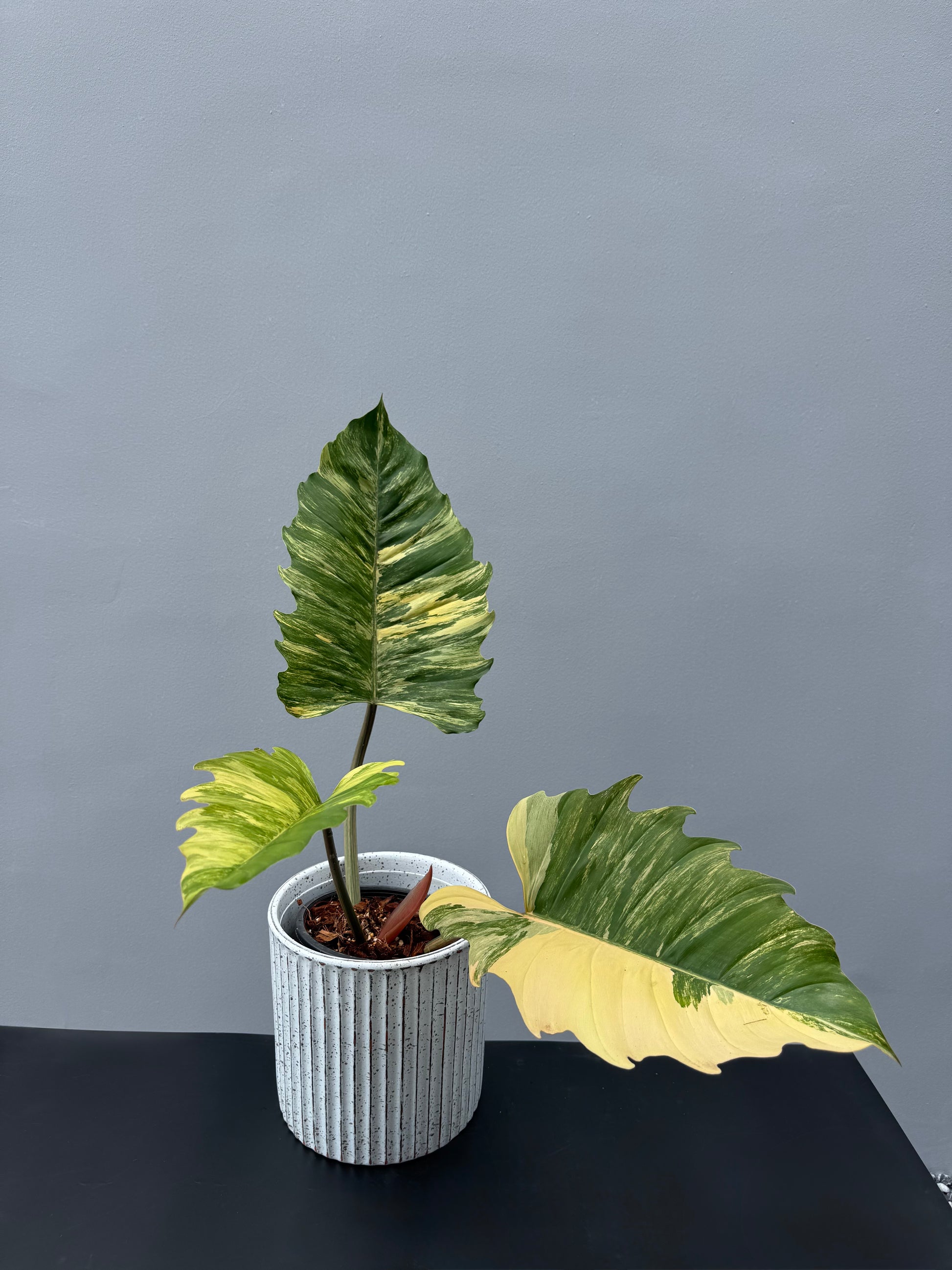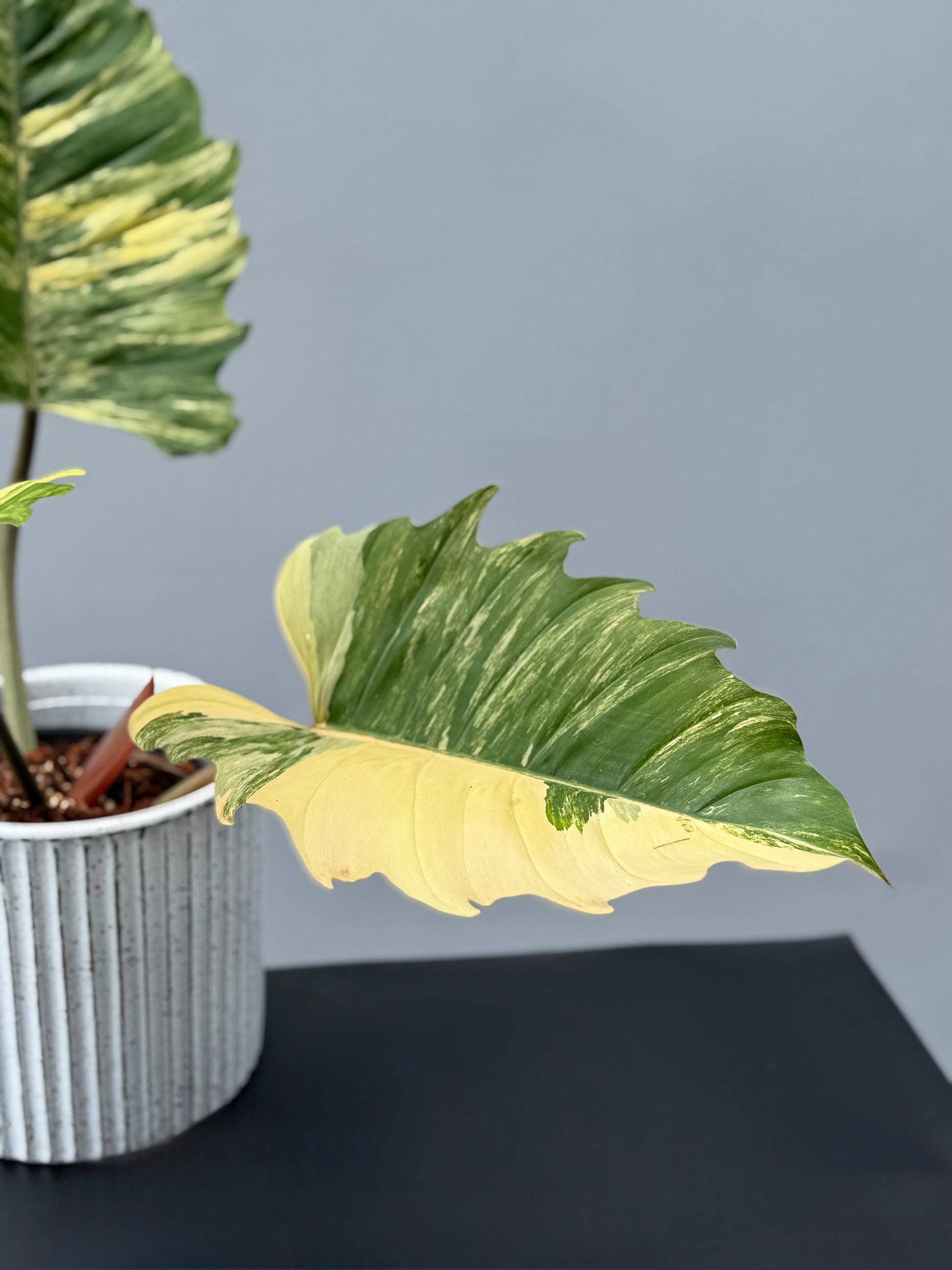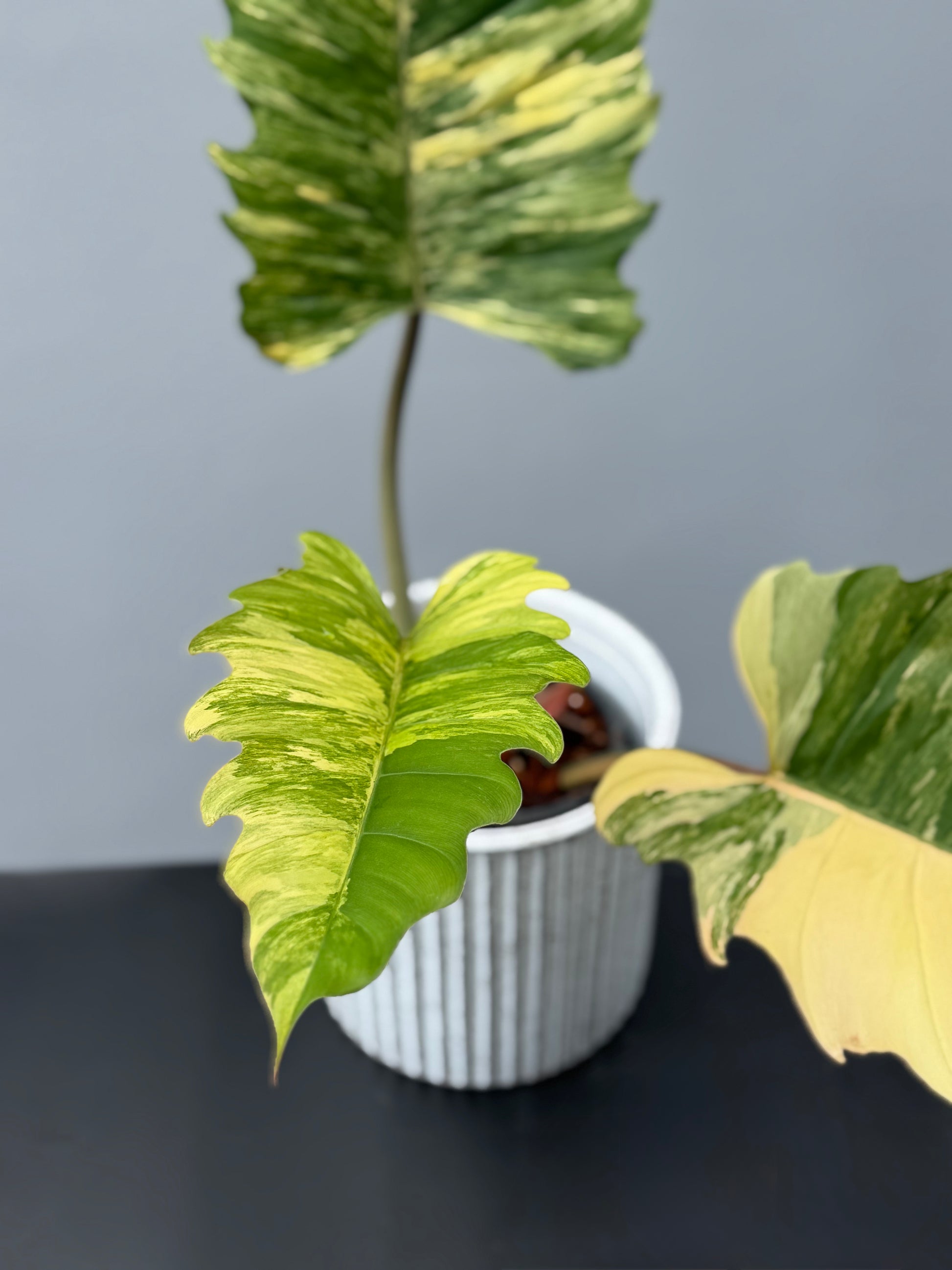 The Philodendron Caramel Marble stands out with its marbled foliage in caramel and cream tones, offering a rare and refined aesthetic.