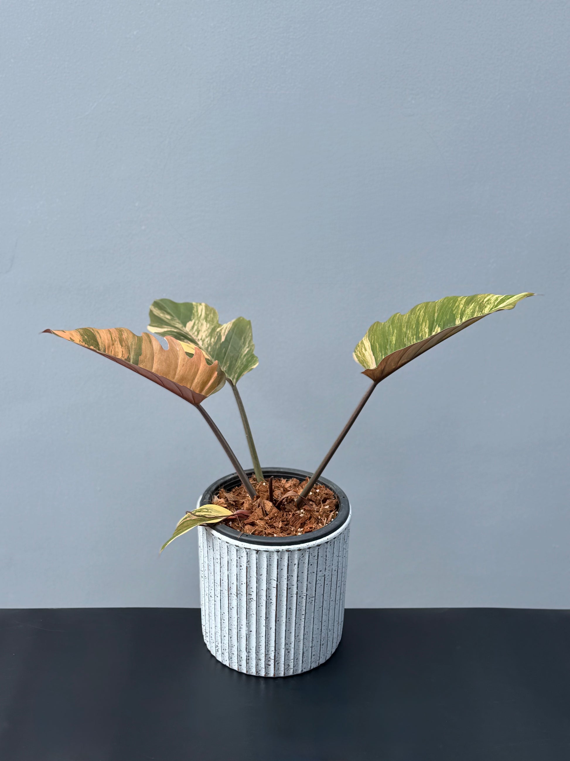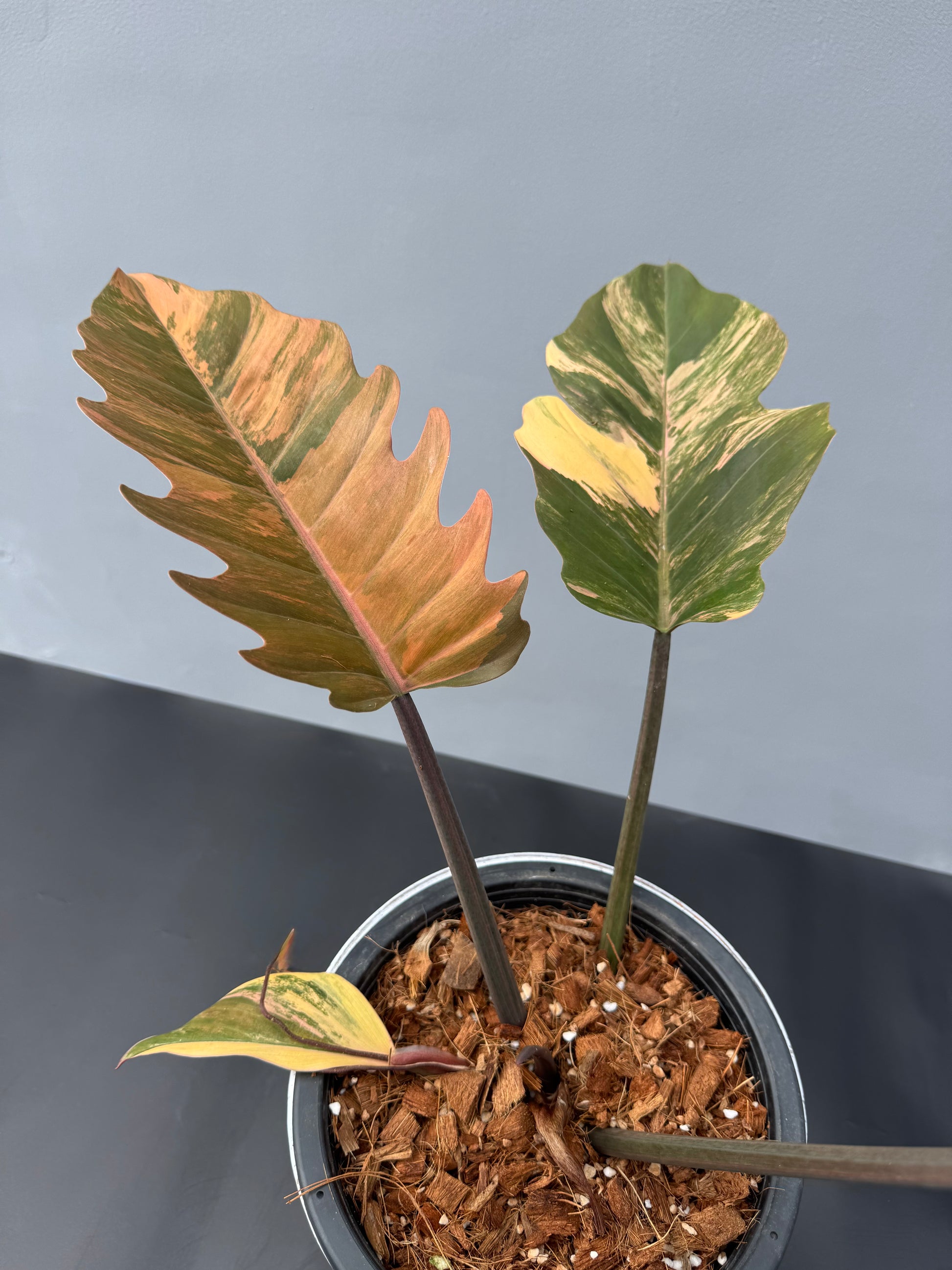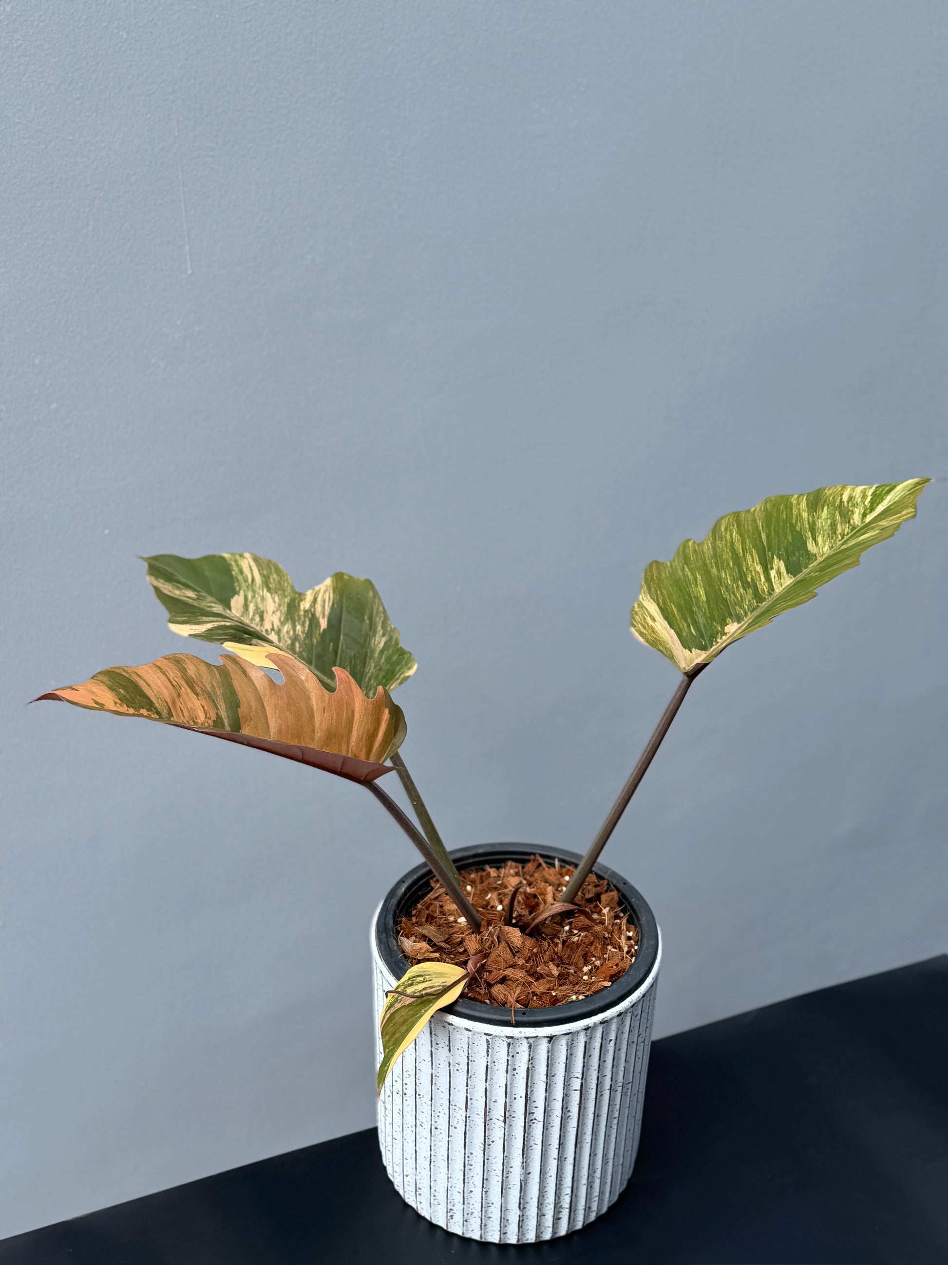 The Philodendron Caramel Marble stands out with its marbled foliage in caramel and cream tones, offering a rare and refined aesthetic.